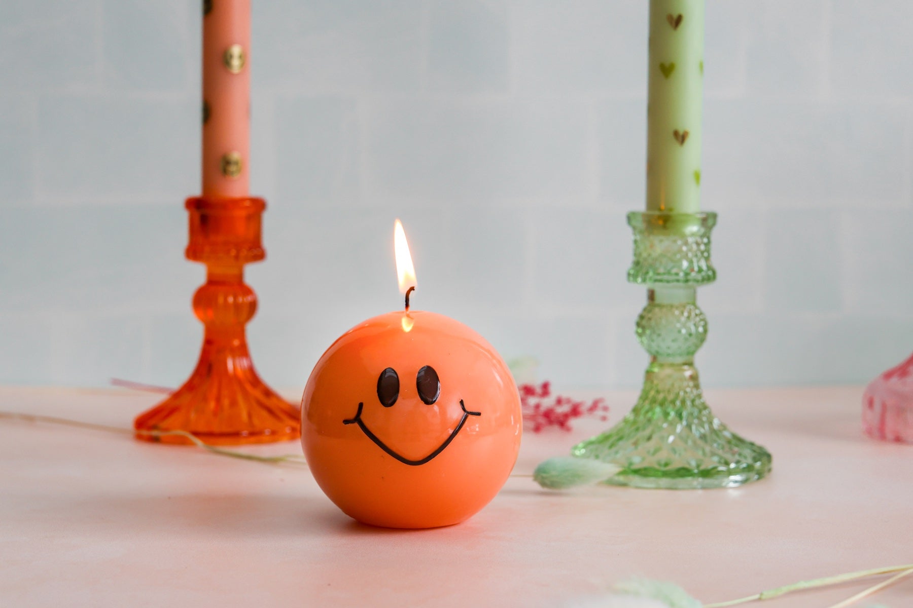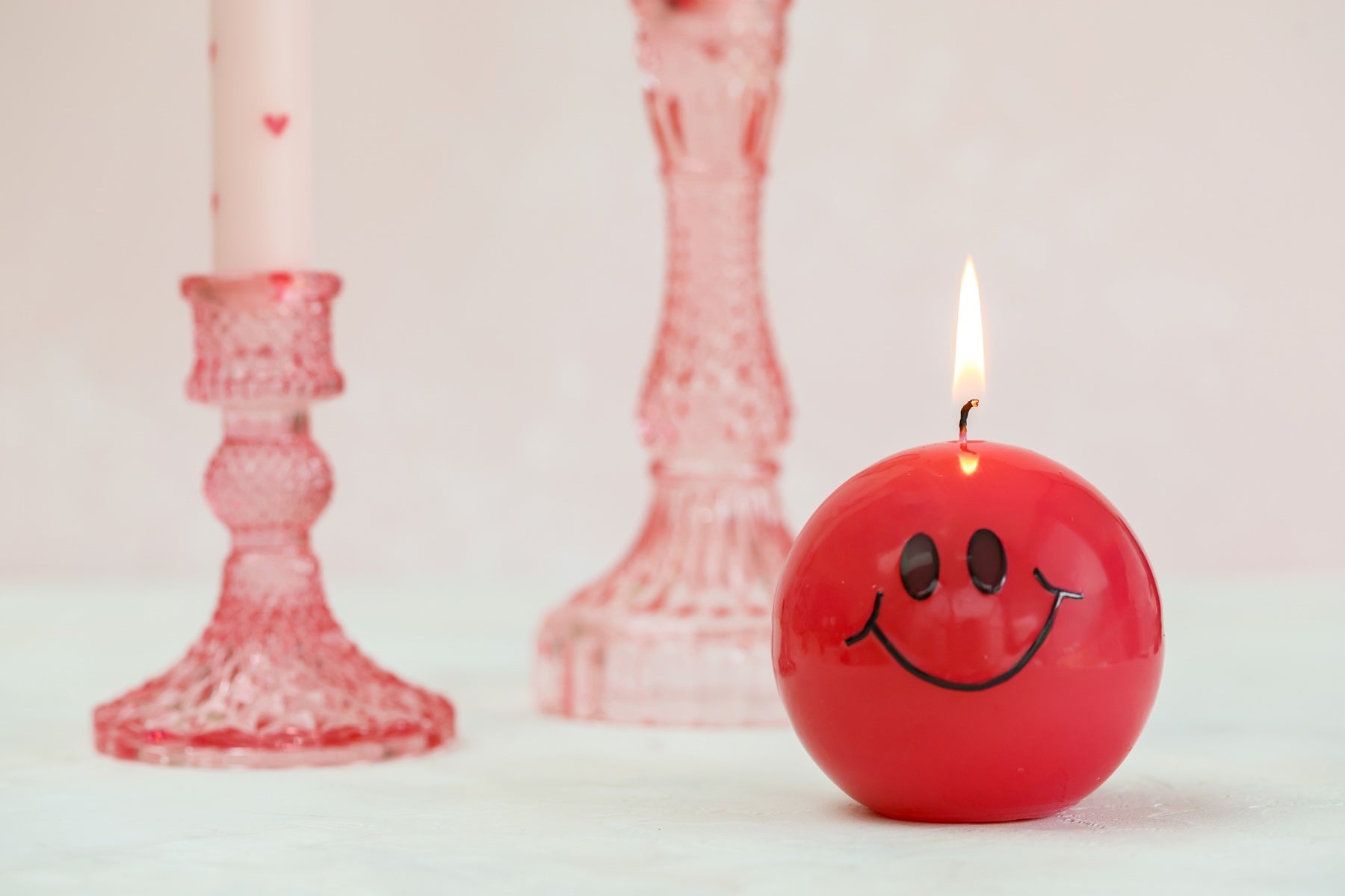 LED Pillar Candle Smiley Pink - Set of 2
